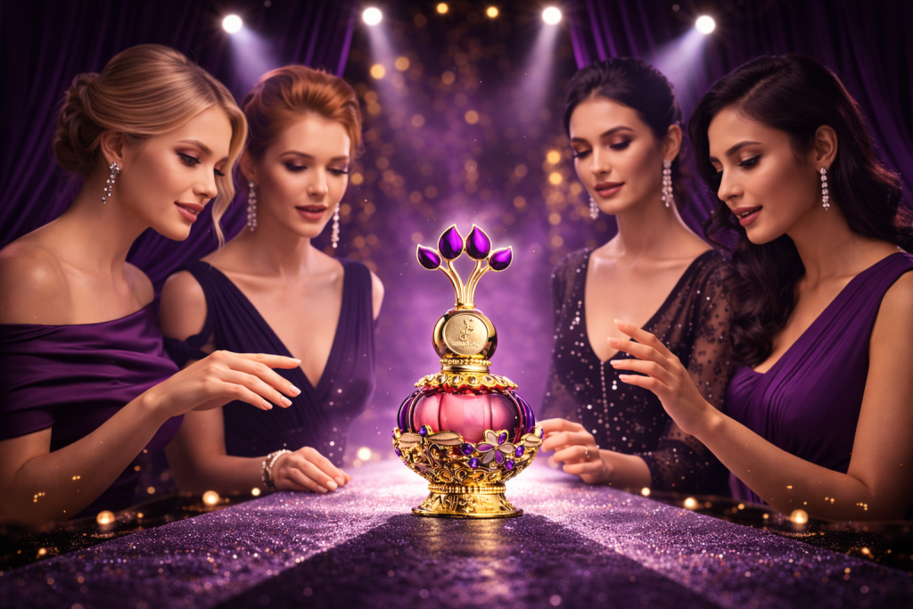 The bottle itself is a visual highlight. Rich purple tones, gold detailing, and an ornate design give Purple Musk a regal presence. It feels collectible, decorative, and luxurious — a piece meant to be displayed, not hidden away.