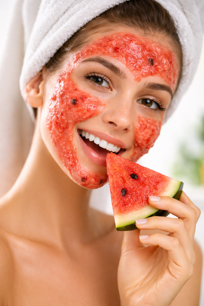 Watermelon contains about 92% water, making it perfect for hydrating the skin and improving its elasticity.
