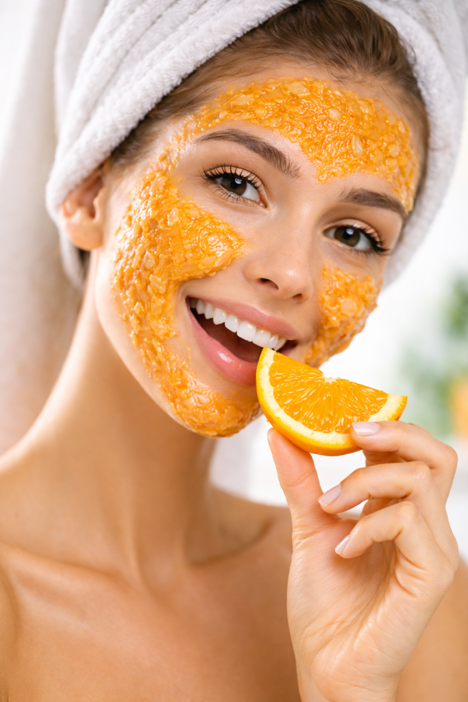 Oranges are rich in vitamin C, which is essential for collagen production. Collagen keeps the skin firm and reduces wrinkles.